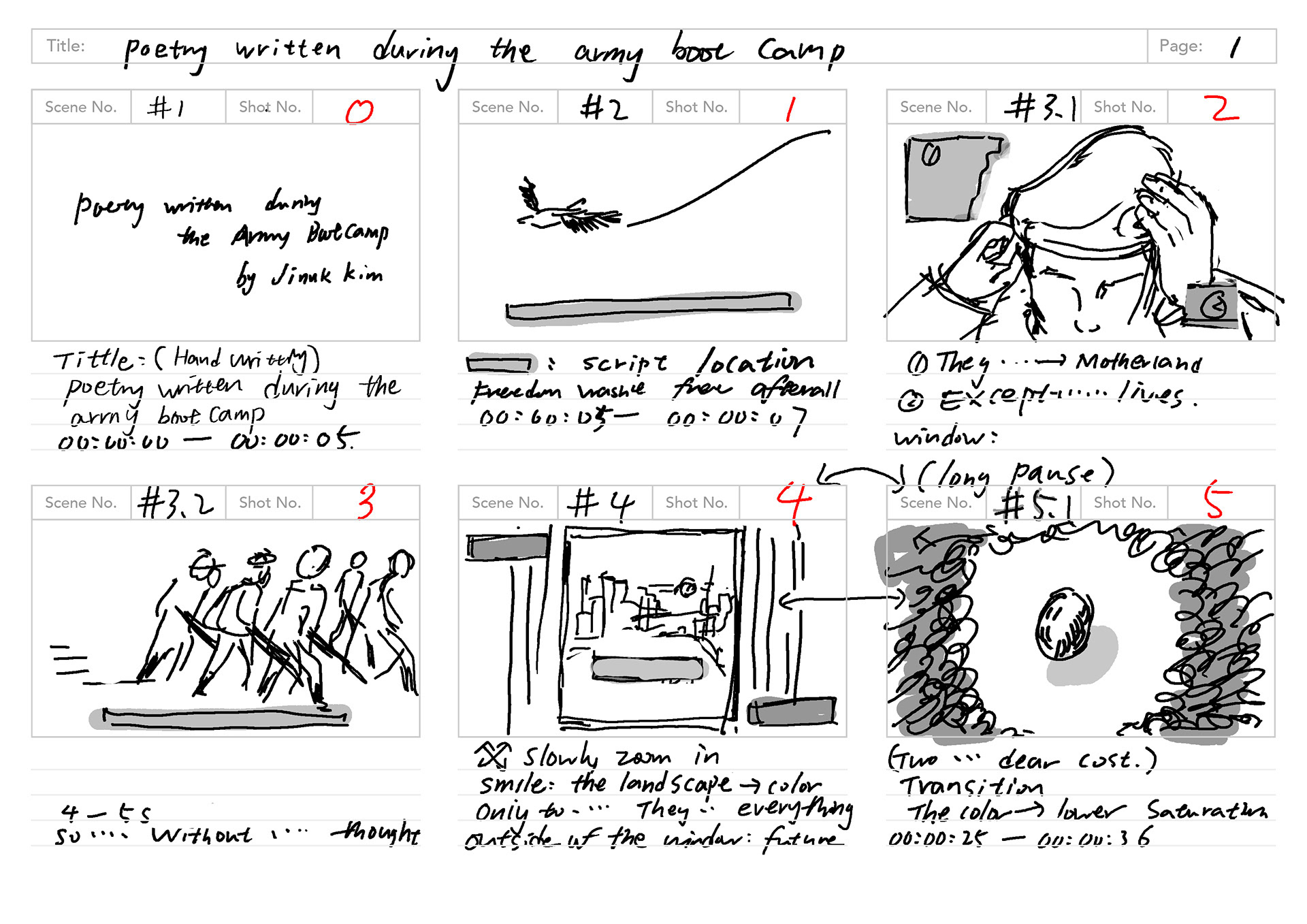 Commissioned by a client from South Korea, I created this animated video for one of his poems written during his army bootcamp. I hand-drew the image sequences, visualizing his poem about one's life during the military service in South Korea. The script and voiceover was provided by the client.